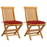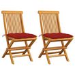 Chaises de jardin et coussins rouge lot de 2 Bois teck massif