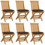Chaises de jardin et coussins taupe lot de 6 Bois teck massif