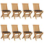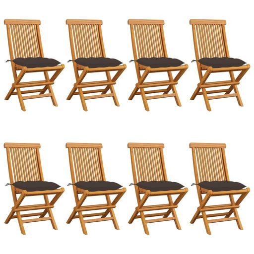 Chaises de jardin et coussins taupe lot de 8 Bois teck massif