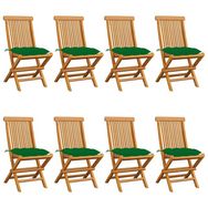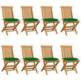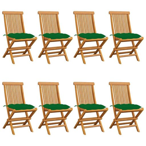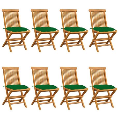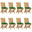 Chaises de jardin et coussins vert lot de 8 Bois de teck massif
