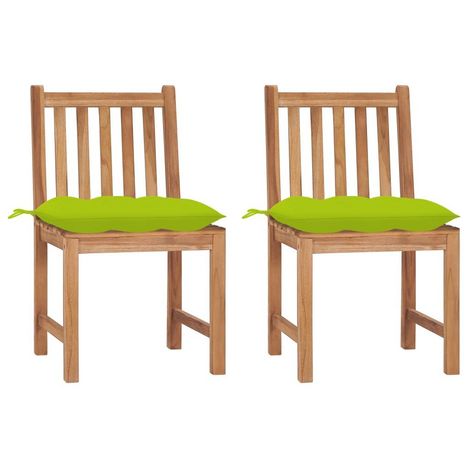 Chaises de jardin lot de 2 avec coussins Bois de teck massif