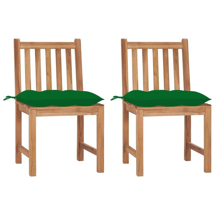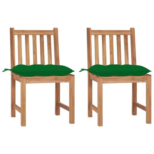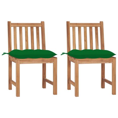 Chaises de jardin lot de 2 avec coussins Bois de teck massif