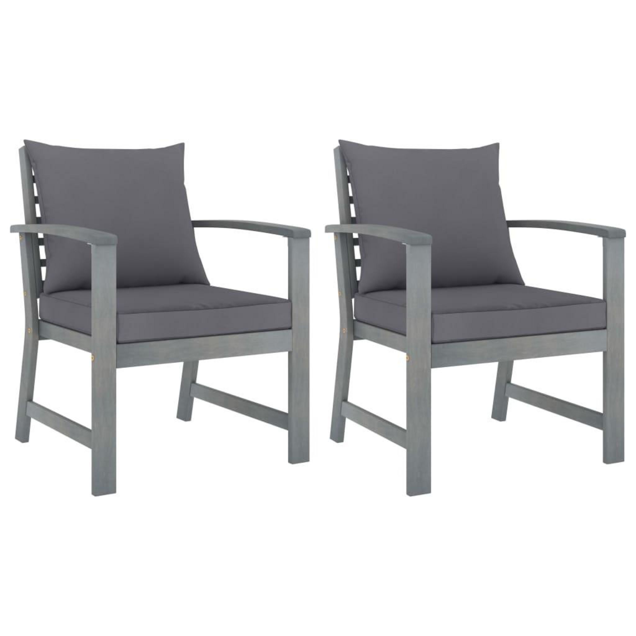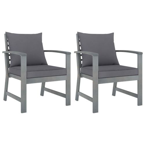 Chaises de jardin lot de 2 avec coussins gris fonce Bois acacia