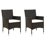 Chaises de jardin lot de 2 avec coussins Résine tressée Noir