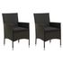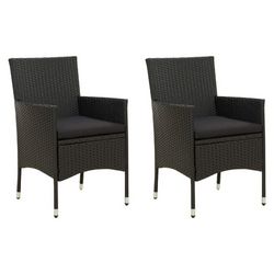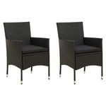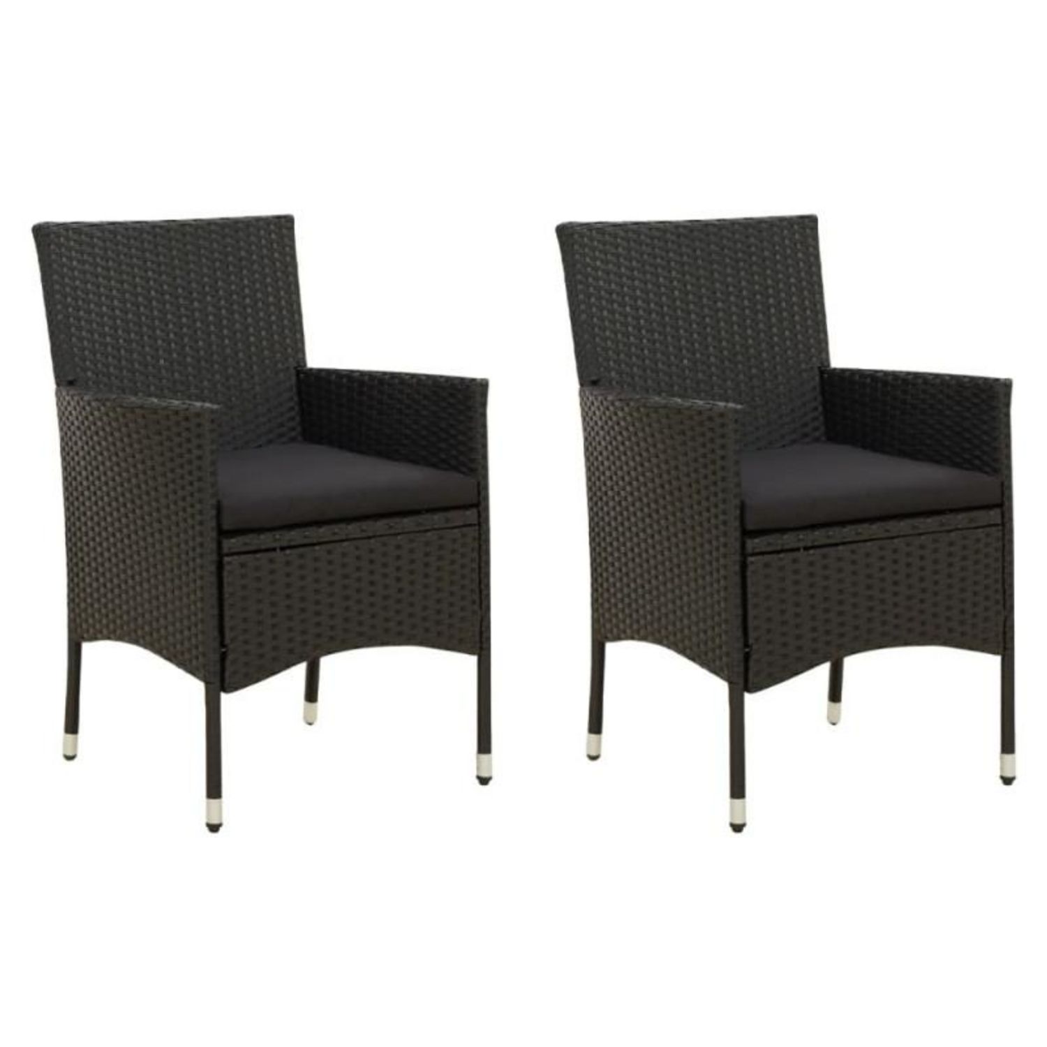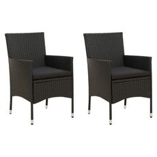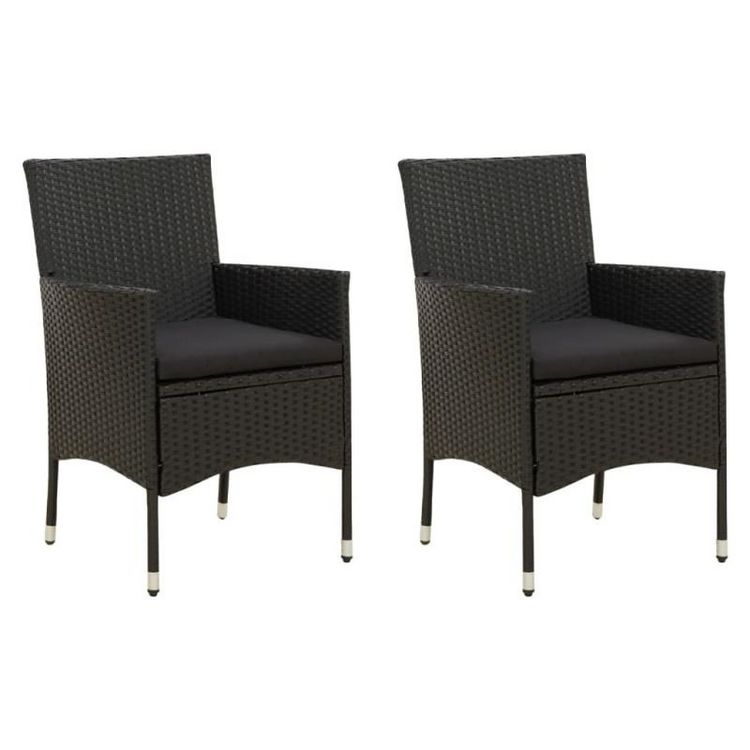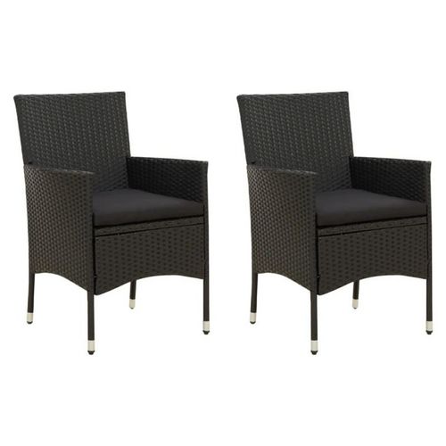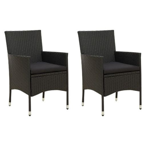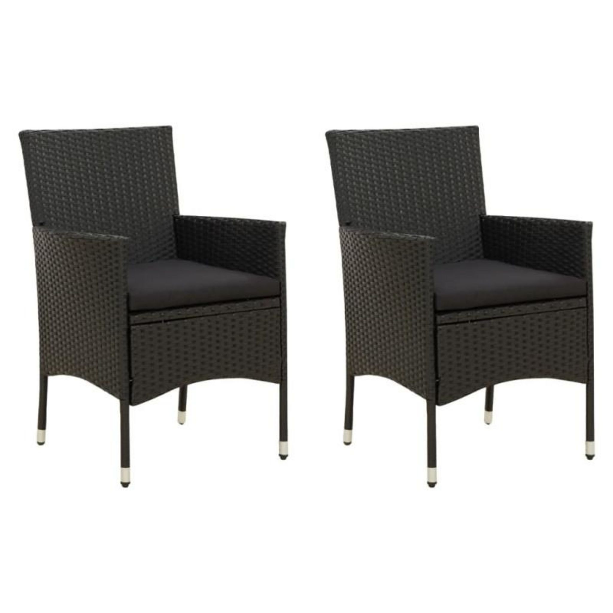 Chaises de jardin lot de 2 avec coussins Résine tressée Noir