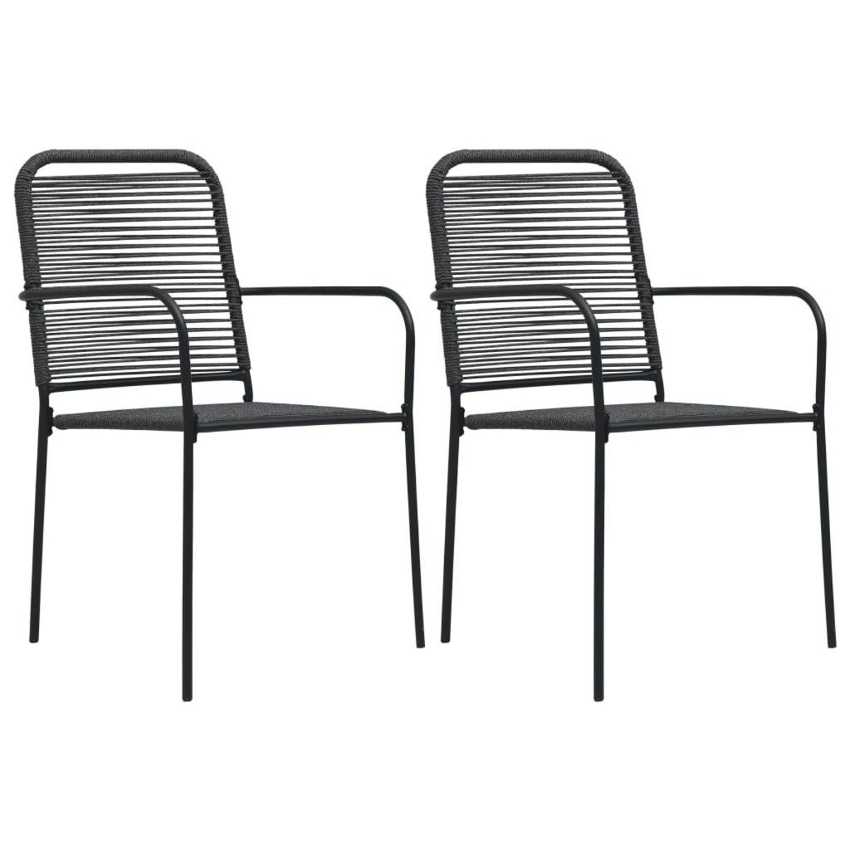 Chaises de jardin lot de 2 Corde en coton et acier Noir