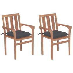 Chaises de jardin lot de 2 et coussins anthracite Bois de teck