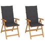 Chaises de jardin lot de 2 et coussins anthracite Bois de teck