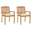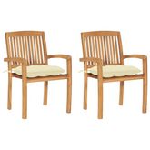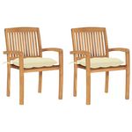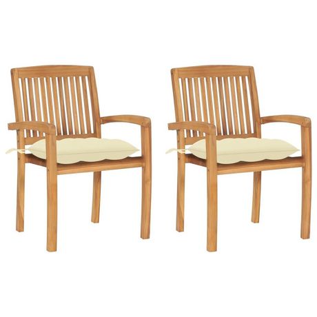 Chaises de jardin lot de 2 et coussins blanc creme Bois de teck