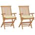 Chaises de jardin lot de 2 et coussins blanc creme Teck massif