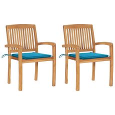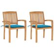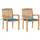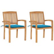 Chaises de jardin lot de 2 et coussins bleu Bois de teck massif
