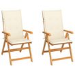 Chaises de jardin lot de 2 et coussins creme Bois teck massif
