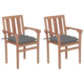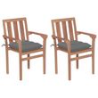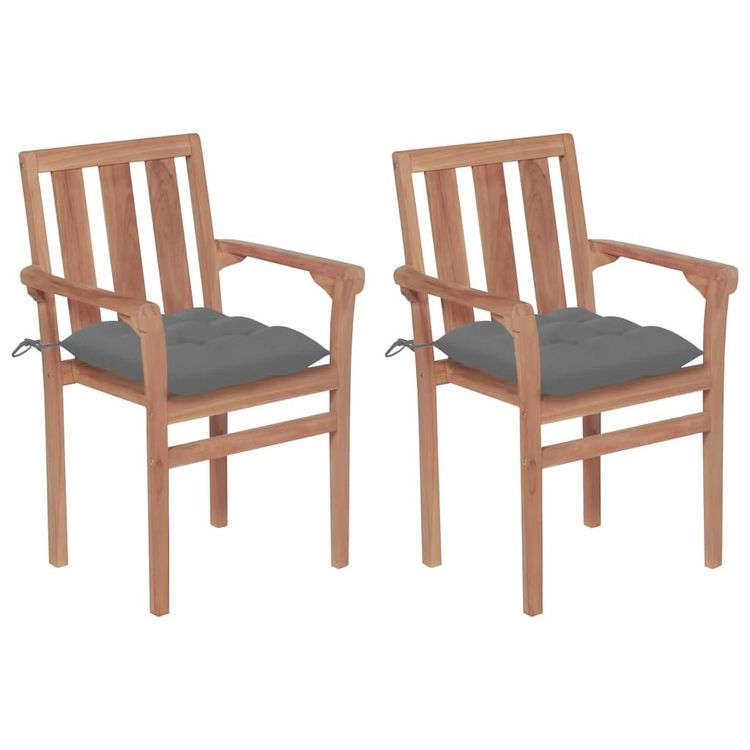 Chaises de jardin lot de 2 et coussins gris Bois de teck massif