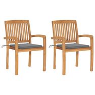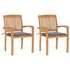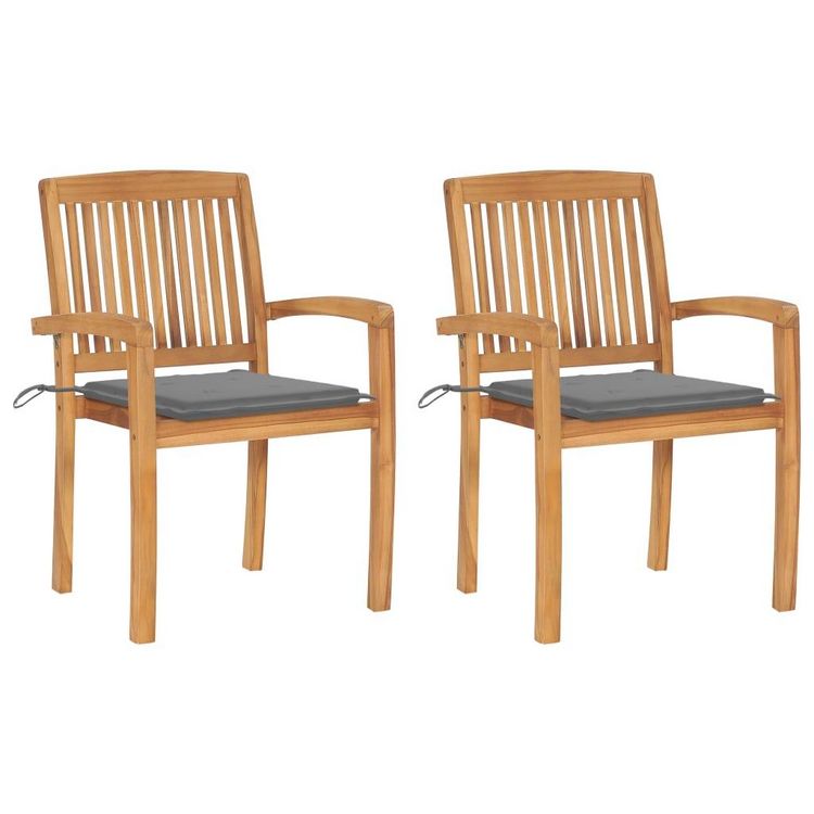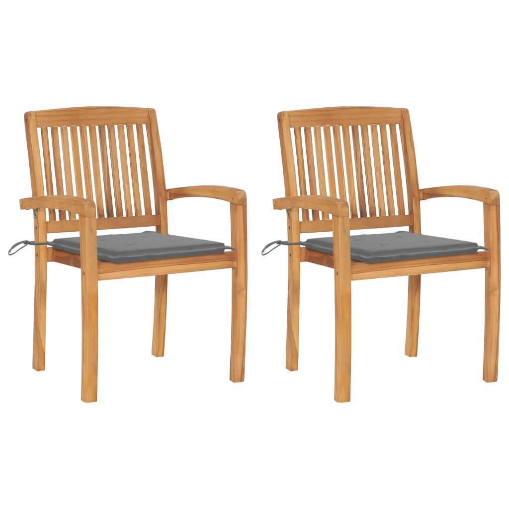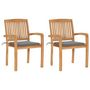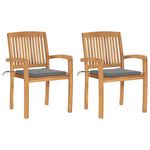 Chaises de jardin lot de 2 et coussins gris Bois de teck massif