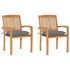 Chaises de jardin lot de 2 et coussins gris Bois de teck massif