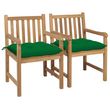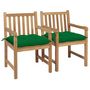 Chaises de jardin lot de 2 et coussins vert Bois de teck massif