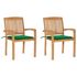 Chaises de jardin lot de 2 et coussins vert Bois de teck massif