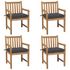 Chaises de jardin lot de 4 avec coussins anthracite Teck solide