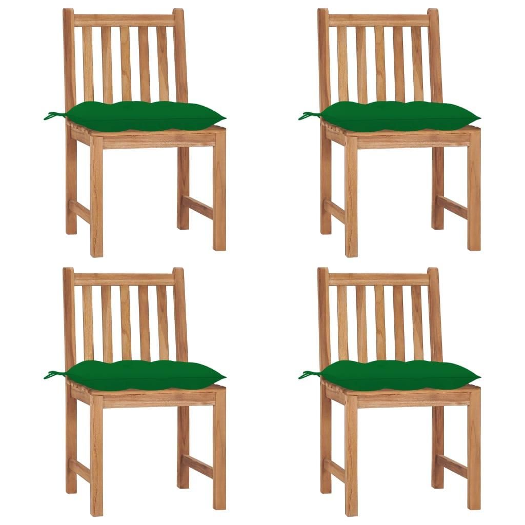 Chaises de jardin lot de 4 avec coussins Bois de teck massif