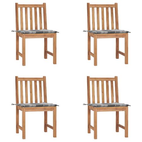Chaises de jardin lot de 4 avec coussins Bois de teck massif