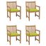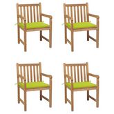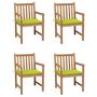 Chaises de jardin lot de 4 avec coussins vert vif Bois de teck