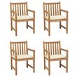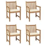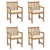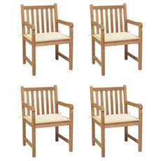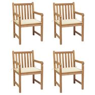 Chaises de jardin lot de 4 et coussins creme bois teck solide