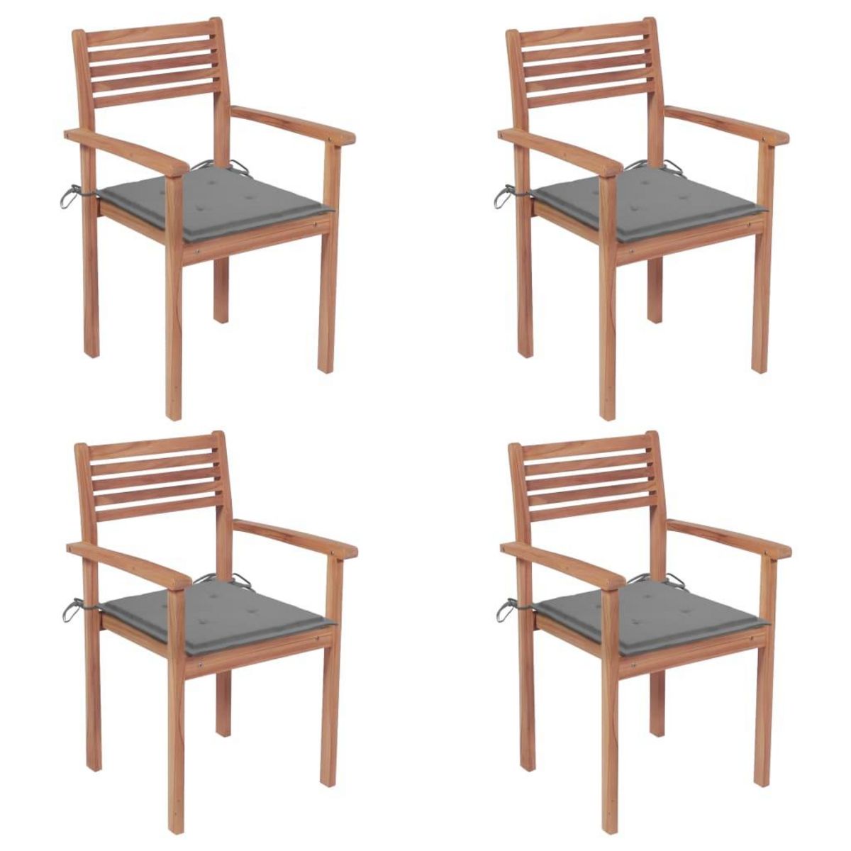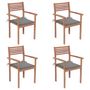 Chaises de jardin lot de 4 et coussins gris Bois de teck solide