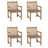 Chaises de jardin lot de 4 et coussins gris Bois de teck solide