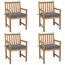 Chaises de jardin lot de 4 et coussins gris Bois de teck solide