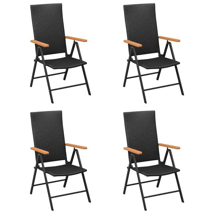 Les chaises sont fabriquees en resine tressee, ce qui les rend durables et resistantes aux intemperies. Les cadres en aluminium enduit de poudre rendent les chaises tres robustes. Les accoudoirs marrons en WPC ajoutent a l'elegance des chaises. Les dossiers des chaises disposent de 7 reglages inclinables, de sorte que vous puissiez toujours trouver la position assise la plus confortable. En outre, les chaises peuvent etre pliees pour economiser de l'espace lorsqu'elles ne sont pas utilisees.