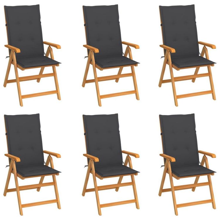 Chaises de jardin lot de 6 avec coussins anthracite Bois teck