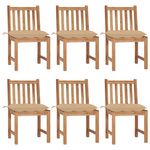 Chaises de jardin lot de 6 avec coussins Bois de teck massif