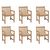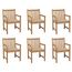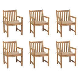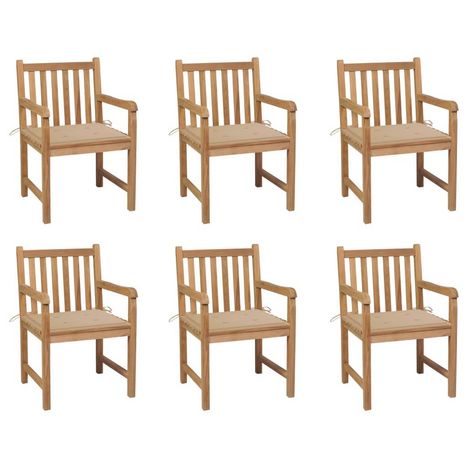 Chaises de jardin lot de 6 et coussins beige Bois teck massif