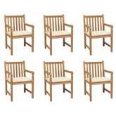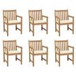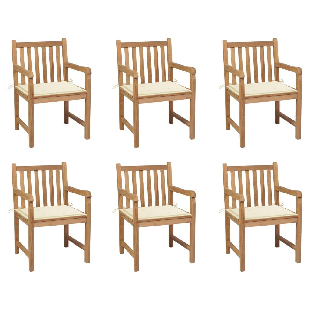 Chaises de jardin lot de 6 et coussins creme Bois teck massif
