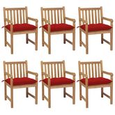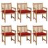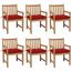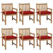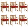 Chaises de jardin lot de 6 et coussins rouge bois teck solide