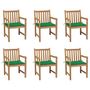 Chaises de jardin lot de 6 et coussins vert Bois de teck massif