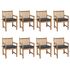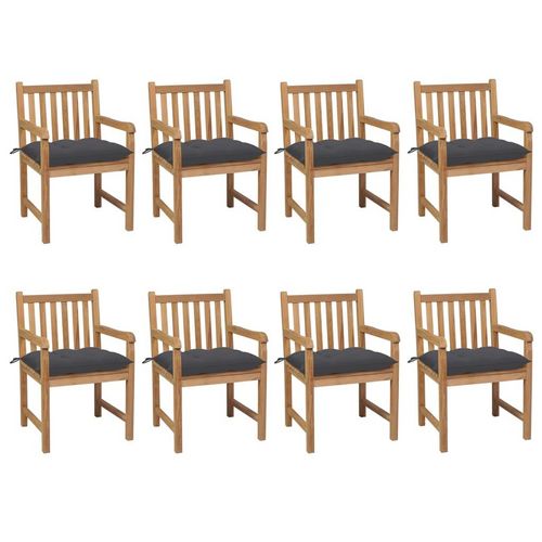 Chaises de jardin lot de 8 avec coussins anthracite Teck solide