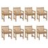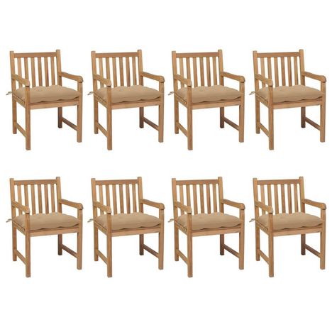 Chaises de jardin lot de 8 avec coussins beige Bois teck solide