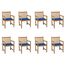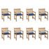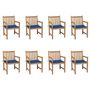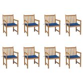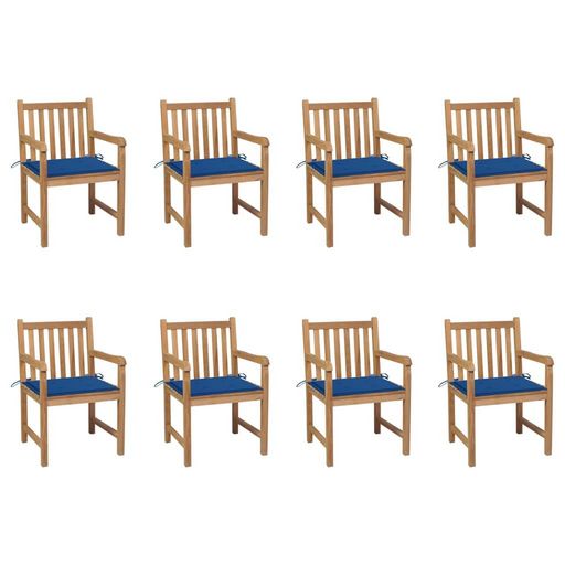 Chaises de jardin lot de 8 avec coussins bleu royal Bois teck