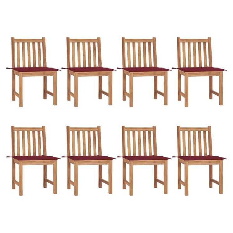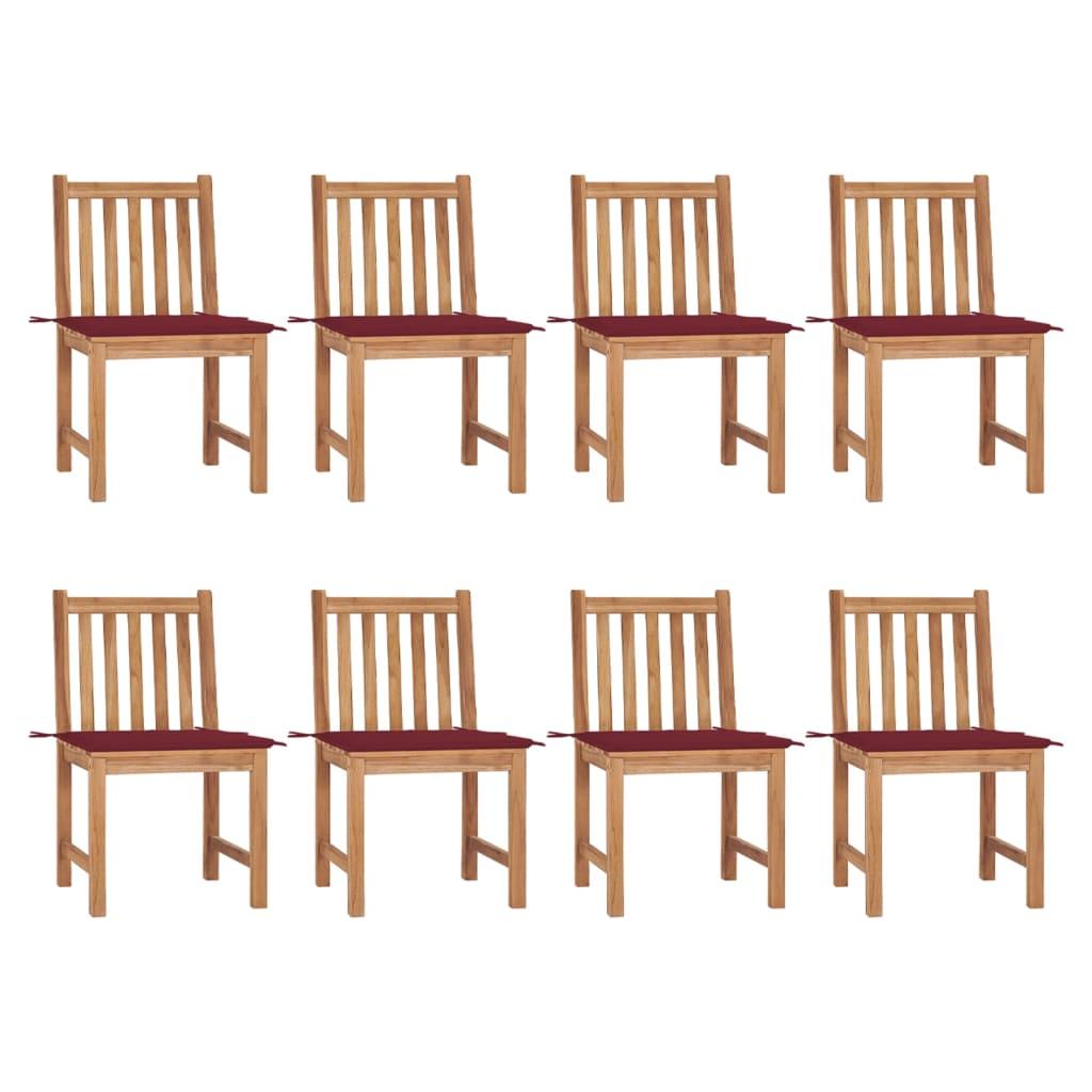 Chaises de jardin lot de 8 avec coussins Bois de teck massif