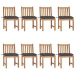 Chaises de jardin lot de 8 avec coussins Bois de teck massif