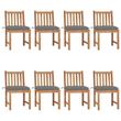 Chaises de jardin lot de 8 avec coussins Bois de teck massif