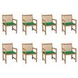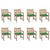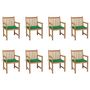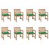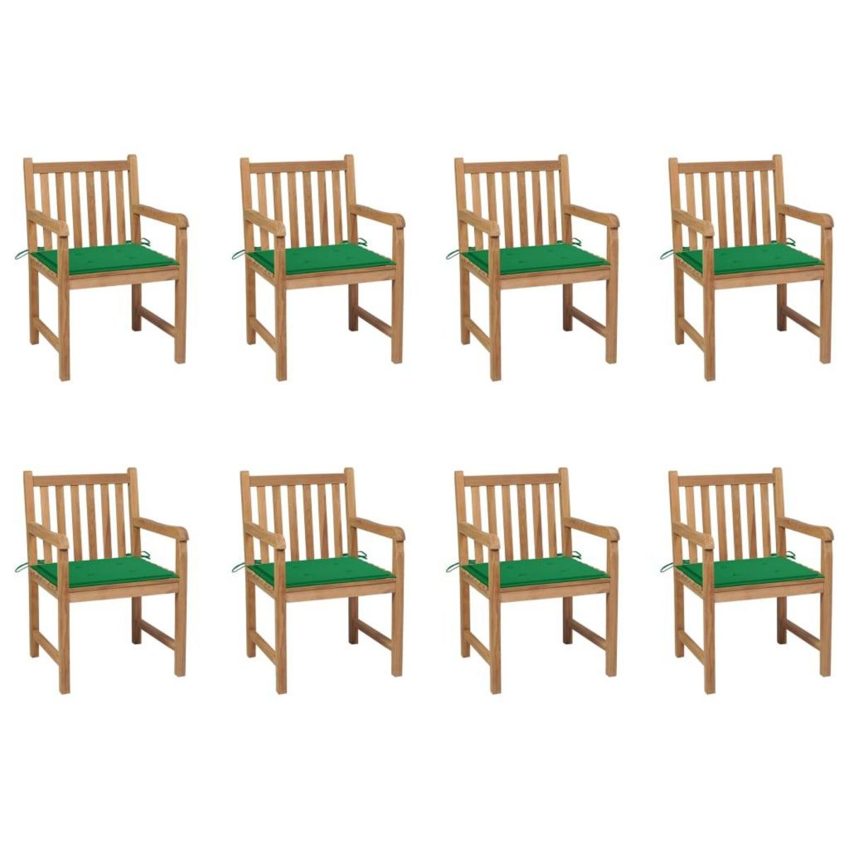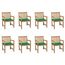 Chaises de jardin lot de 8 avec coussins vert Bois teck massif