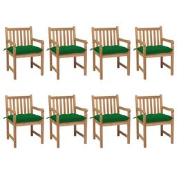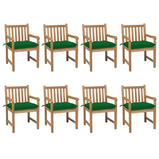 Chaises de jardin lot de 8 avec coussins vert Bois teck solide