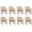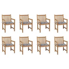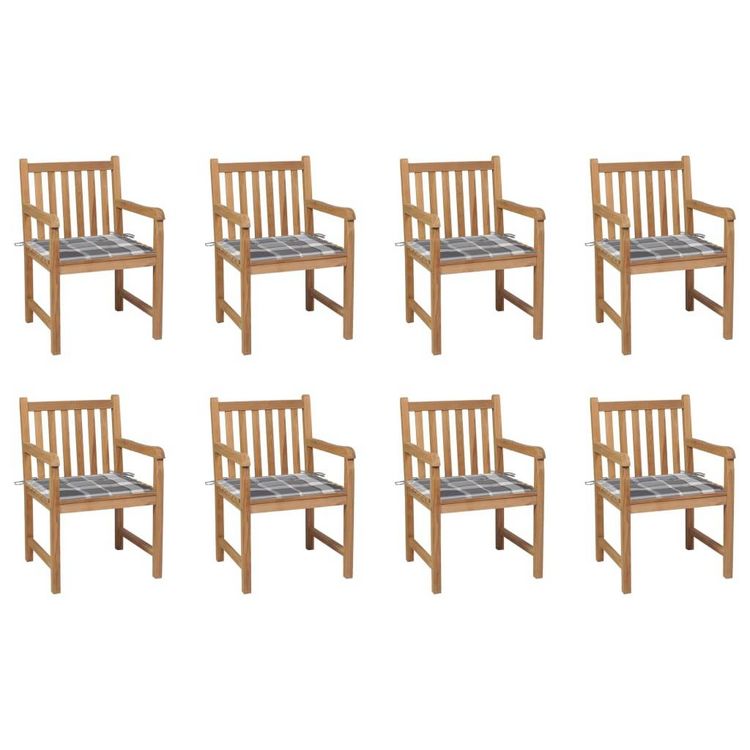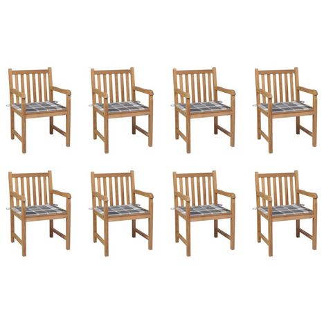 Chaises de jardin lot de 8 et coussins carreaux gris Bois teck