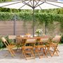 Chaises de jardin pliantes lot de 8 beige tissu et bois massif