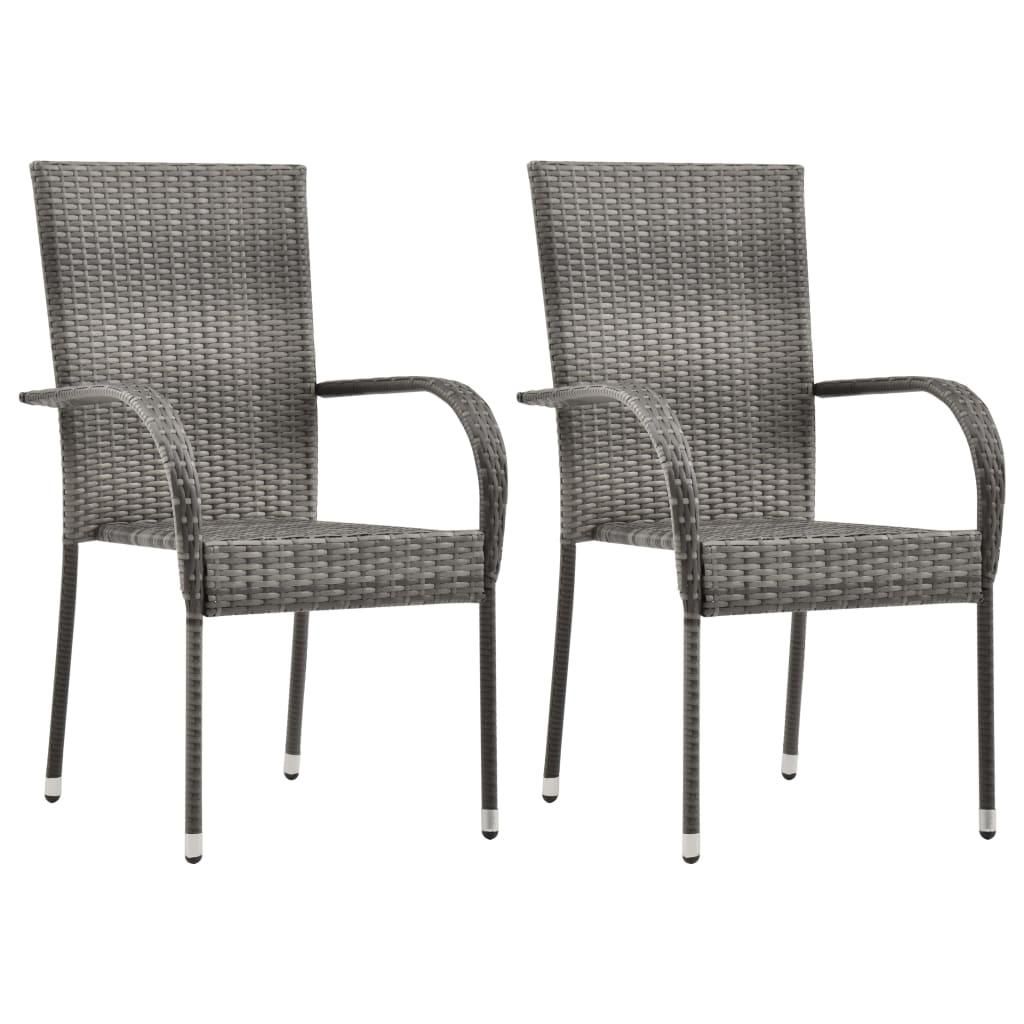 Chaises empilables d'exterieur lot de 2 Gris Resine tressee