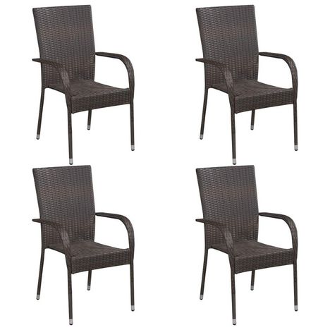 Chaises empilables d'exterieur lot de 4 Resine tressee Marron
