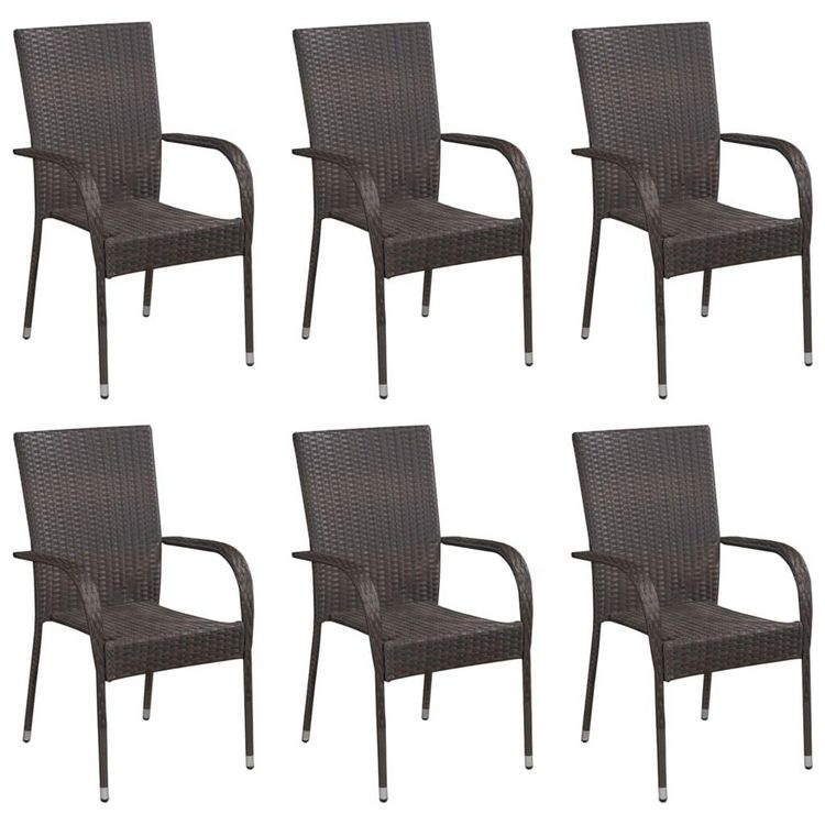 Chaises empilables d'exterieur lot de 6 Resine tressee Marron