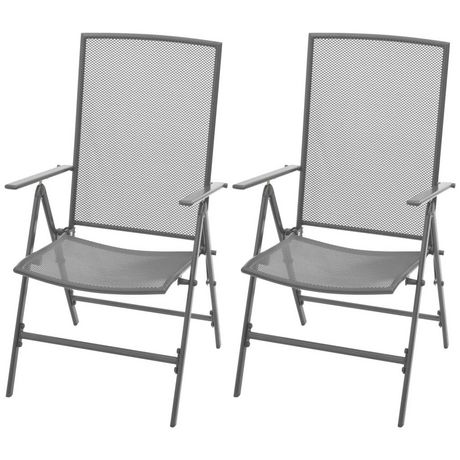 Ces chaises de jardin de haute qualite disposent d'un dossier inclinable reglable en 6 positions. Asseyez-vous et profitez de votre temps libre dans le confort avec ces chaises inclinables elegantes ! Les chaises sont en acier robuste qui a reçu un revetement par electrodeposition et un revetement en poudre. Les chaises en metal sont tres solides, durables et resistantes aux intemperies et a la rouille. Elles sont egalement tres faciles a nettoyer et a entretenir grace a la finition. La conception en maille donne aux chaises un aspect elegant. Ces chaises peuvent etre rabattues pour economiser de l'espace lorsqu'elles ne sont pas utilisees.